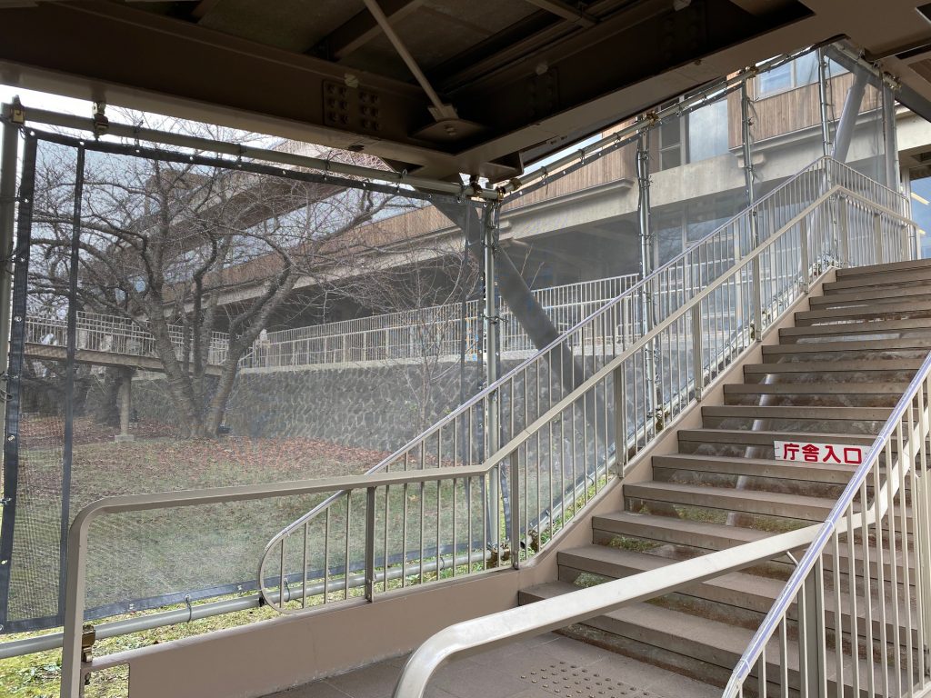 製品 能代市役所 階段部分 防風・防雪ネット 2021年12月1日 2022年7月2日 nagatotent Facebook postはてブPocketFeedly 防風・防雪ネット グレー色 フレームに合わせたネット製作可能です。 Facebook postはてブPocketFeedly